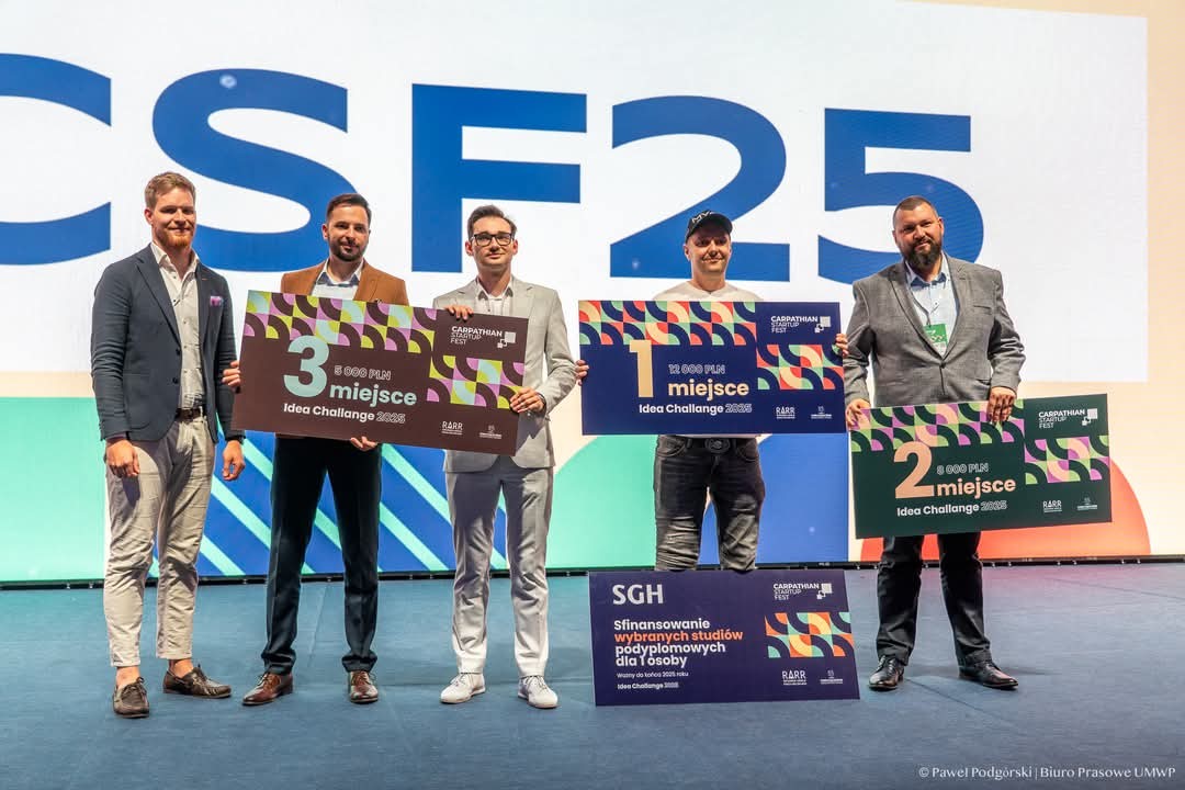 3 rok z rzędu zespół naukowy Politechniki Rzeszowskiej z Zakładu Informatyki w Zarządzaniu Wydziału Zarządzania oraz Katedry Energoelektroniki i Elektroenergetyki Wydziału Elektrotechniki i Informatyki na podium w prestiżowego konkursu Carpathian Startup Fest 2025!